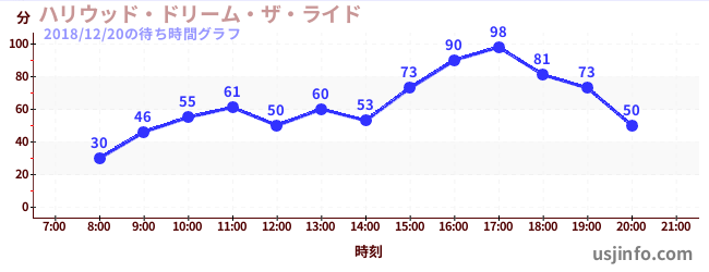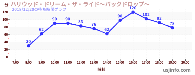 • ハリウッド・ドリーム・ザ・ライド〜バックドロップ〜$B$N(B2018年12月20日の待ち時間
