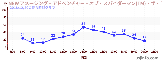 • NEW アメージング・アドベンチャー・オブ・スパイダーマン(TM)・ザ・ライド 4K3D$B$N(B2018年12月20日の待ち時間
