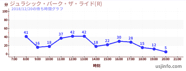• ジュラシック・パーク・ザ・ライド(R)$B$N(B2018年12月20日の待ち時間