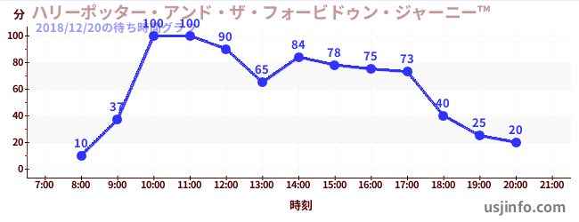• ハリーポッター・アンド・ザ・フォービドゥン・ジャーニー™$B$N(B2018年12月20日の待ち時間