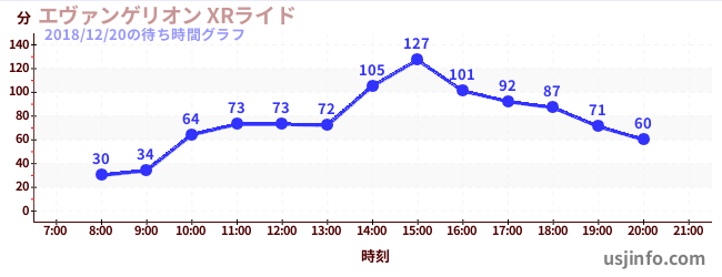 • エヴァンゲリオン XRライド$B$N(B2018年12月20日の待ち時間