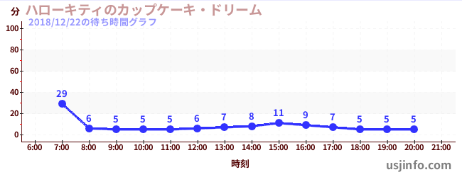 • ハローキティのカップケーキ・ドリーム$B$N(B2018年12月22日の待ち時間