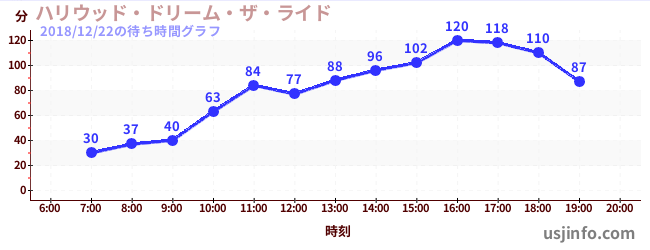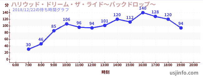 • ハリウッド・ドリーム・ザ・ライド〜バックドロップ〜$B$N(B2018年12月22日の待ち時間