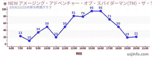 • NEW アメージング・アドベンチャー・オブ・スパイダーマン(TM)・ザ・ライド 4K3D$B$N(B2018年12月22日の待ち時間