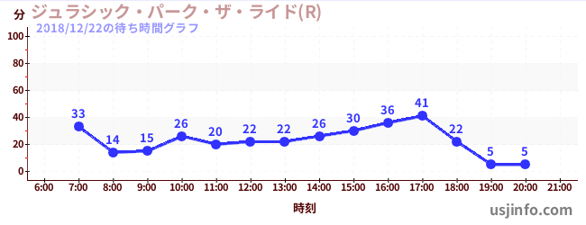 • ジュラシック・パーク・ザ・ライド(R)$B$N(B2018年12月22日の待ち時間