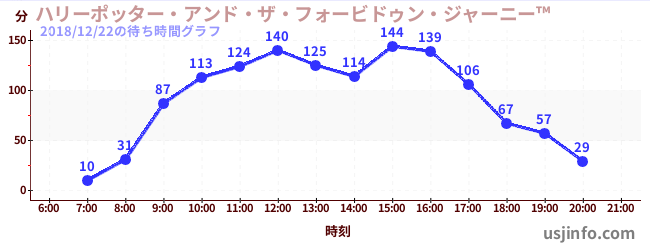 • ハリーポッター・アンド・ザ・フォービドゥン・ジャーニー™$B$N(B2018年12月22日の待ち時間