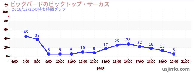• ビッグバードのビックトップ・サーカス$B$N(B2018年12月22日の待ち時間