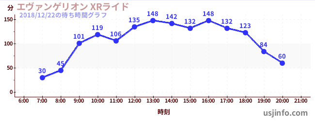 • エヴァンゲリオン XRライド$B$N(B2018年12月22日の待ち時間