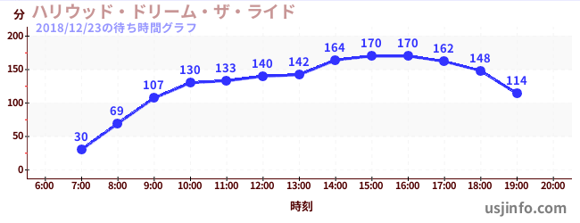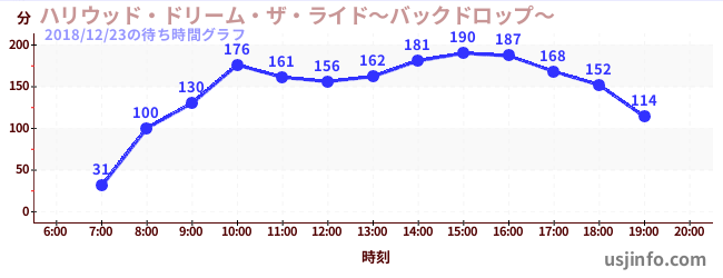 • ハリウッド・ドリーム・ザ・ライド〜バックドロップ〜$B$N(B2018年12月23日の待ち時間