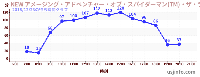 • NEW アメージング・アドベンチャー・オブ・スパイダーマン(TM)・ザ・ライド 4K3D$B$N(B2018年12月23日の待ち時間