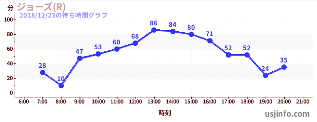 • ジョーズ(R)$B$N(B2018年12月23日の待ち時間