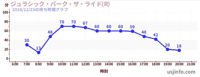 • ジュラシック・パーク・ザ・ライド(R)$B$N(B2018年12月23日の待ち時間