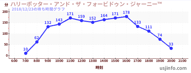 • ハリーポッター・アンド・ザ・フォービドゥン・ジャーニー™$B$N(B2018年12月23日の待ち時間