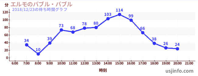 • エルモのバブル・バブル$B$N(B2018年12月23日の待ち時間