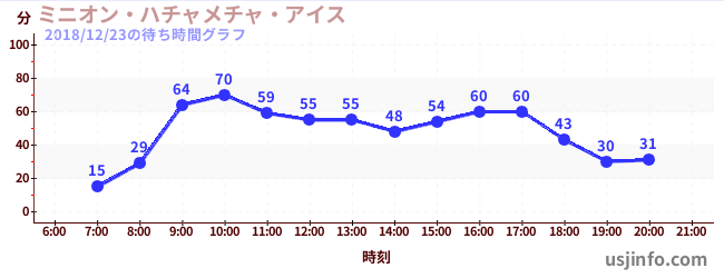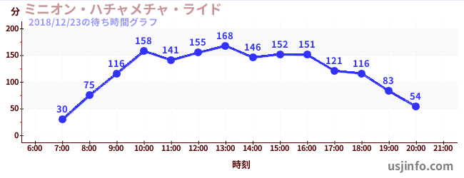 • ミニオン・ハチャメチャ・ライド$B$N(B2018年12月23日の待ち時間
