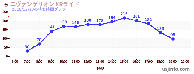 • エヴァンゲリオン XRライド$B$N(B2018年12月23日の待ち時間