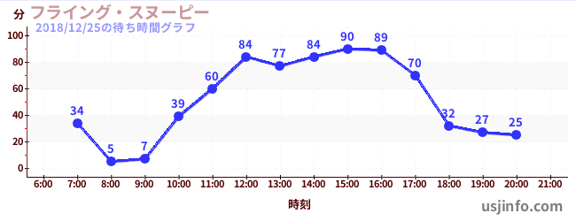 • フライング・スヌーピー$B$N(B2018年12月25日の待ち時間