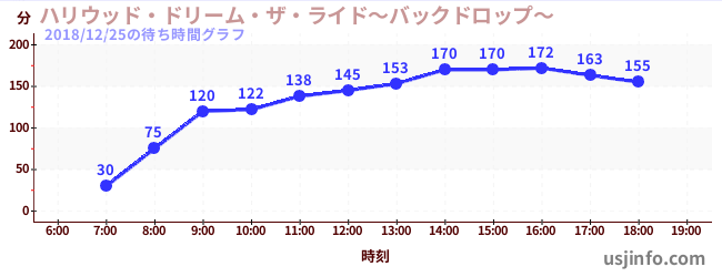 • ハリウッド・ドリーム・ザ・ライド〜バックドロップ〜$B$N(B2018年12月25日の待ち時間