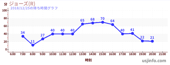 • ジョーズ(R)$B$N(B2018年12月25日の待ち時間