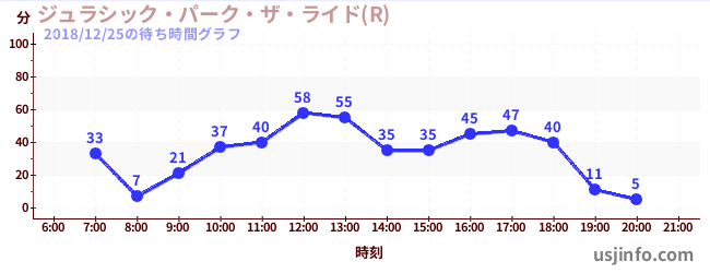• ジュラシック・パーク・ザ・ライド(R)$B$N(B2018年12月25日の待ち時間