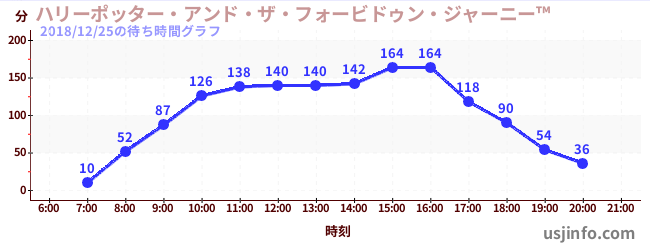 • ハリーポッター・アンド・ザ・フォービドゥン・ジャーニー™$B$N(B2018年12月25日の待ち時間