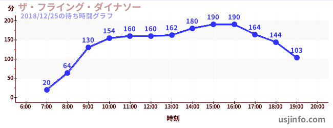 • ザ・フライング・ダイナソー$B$N(B2018年12月25日の待ち時間