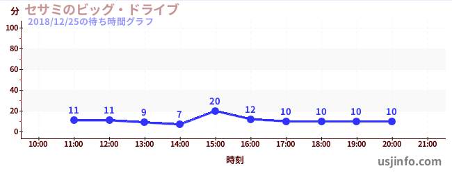 • セサミのビッグ・ドライブ$B$N(B2018年12月25日の待ち時間