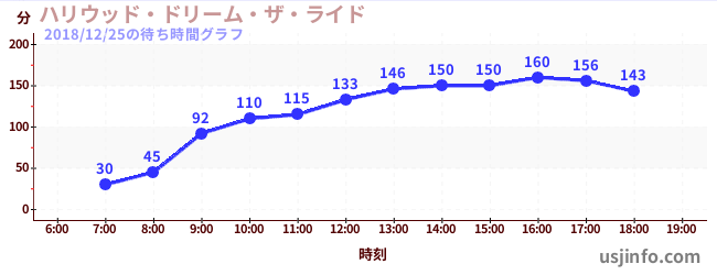• ハリウッド・ドリーム・ザ・ライド$B$N(B2018年12月25日の待ち時間