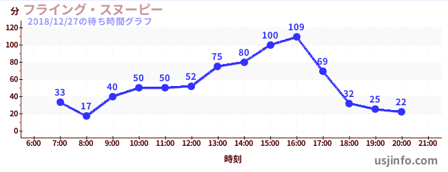 • フライング・スヌーピー$B$N(B2018年12月27日の待ち時間
