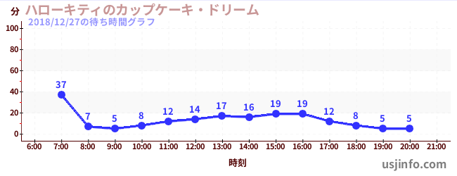 • ハローキティのカップケーキ・ドリーム$B$N(B2018年12月27日の待ち時間