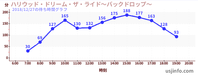 • ハリウッド・ドリーム・ザ・ライド〜バックドロップ〜$B$N(B2018年12月27日の待ち時間