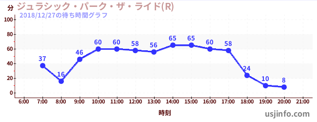 • ジュラシック・パーク・ザ・ライド(R)$B$N(B2018年12月27日の待ち時間