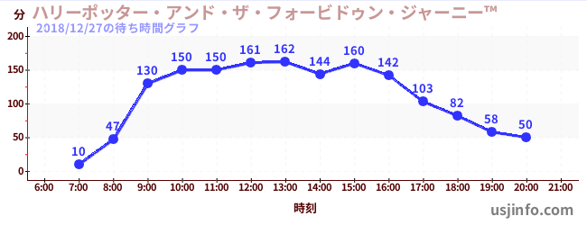 • ハリーポッター・アンド・ザ・フォービドゥン・ジャーニー™$B$N(B2018年12月27日の待ち時間