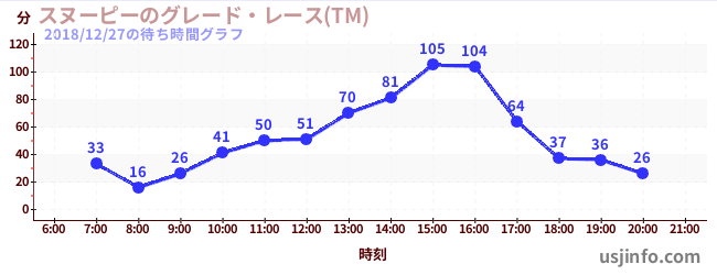 • スヌーピーのグレード・レース(TM)$B$N(B2018年12月27日の待ち時間