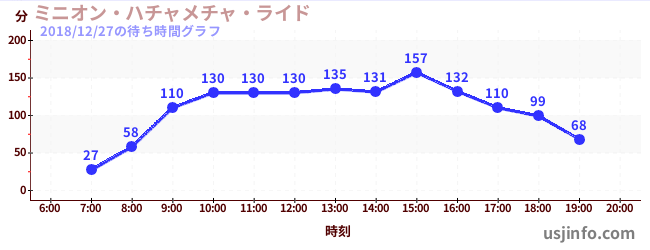 • ミニオン・ハチャメチャ・ライド$B$N(B2018年12月27日の待ち時間