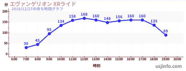 • エヴァンゲリオン XRライド$B$N(B2018年12月27日の待ち時間