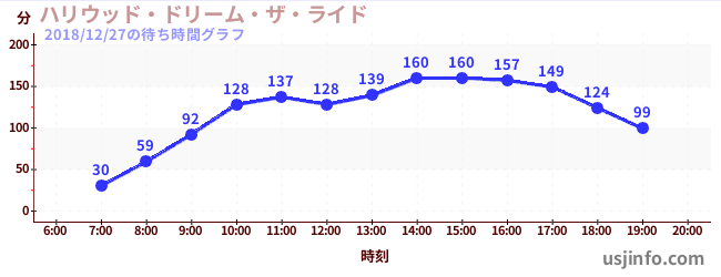 • ハリウッド・ドリーム・ザ・ライド$B$N(B2018年12月27日の待ち時間