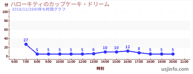 • ハローキティのカップケーキ・ドリーム$B$N(B2018年12月29日の待ち時間