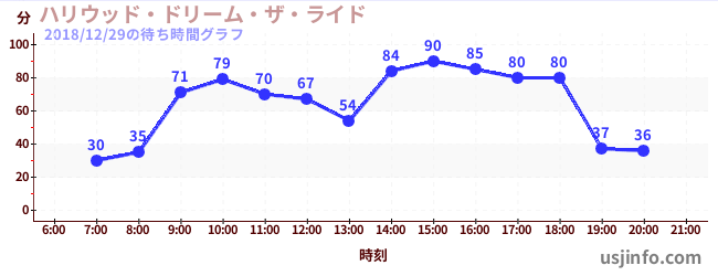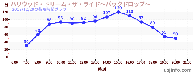 • ハリウッド・ドリーム・ザ・ライド〜バックドロップ〜$B$N(B2018年12月29日の待ち時間