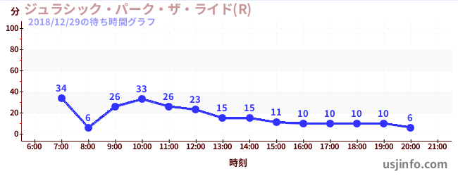 • ジュラシック・パーク・ザ・ライド(R)$B$N(B2018年12月29日の待ち時間