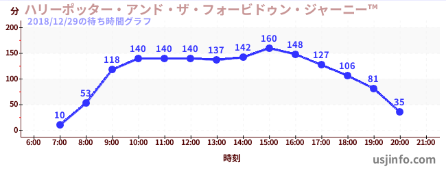 • ハリーポッター・アンド・ザ・フォービドゥン・ジャーニー™$B$N(B2018年12月29日の待ち時間