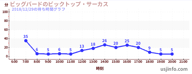 • ビッグバードのビックトップ・サーカス$B$N(B2018年12月29日の待ち時間