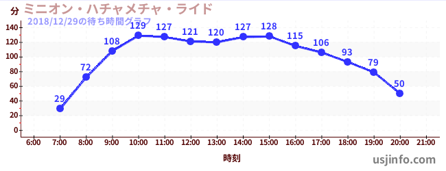 • ミニオン・ハチャメチャ・ライド$B$N(B2018年12月29日の待ち時間