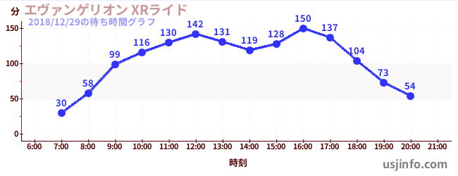 • エヴァンゲリオン XRライド$B$N(B2018年12月29日の待ち時間