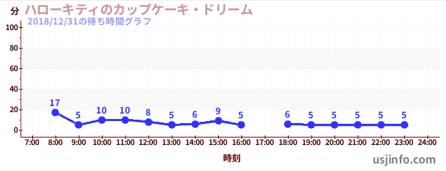 • ハローキティのカップケーキ・ドリーム$B$N(B2018年12月31日の待ち時間