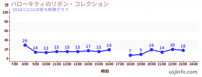 • ハローキティのリボン・コレクション$B$N(B2018年12月31日の待ち時間