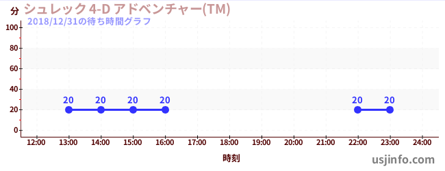• シュレック 4-D アドベンチャー(TM)$B$N(B2018年12月31日の待ち時間