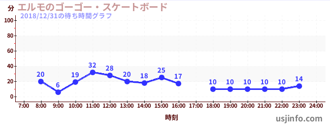 • エルモのゴーゴー・スケートボード$B$N(B2018年12月31日の待ち時間