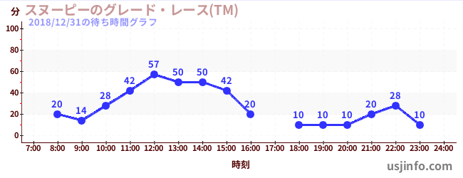• スヌーピーのグレード・レース(TM)$B$N(B2018年12月31日の待ち時間