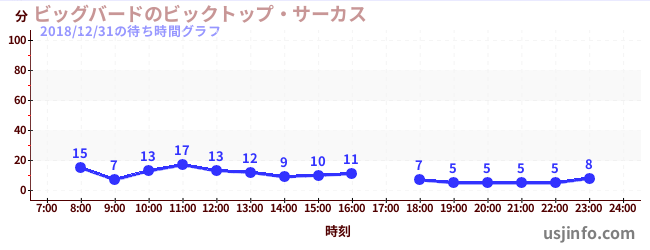• ビッグバードのビックトップ・サーカス$B$N(B2018年12月31日の待ち時間
